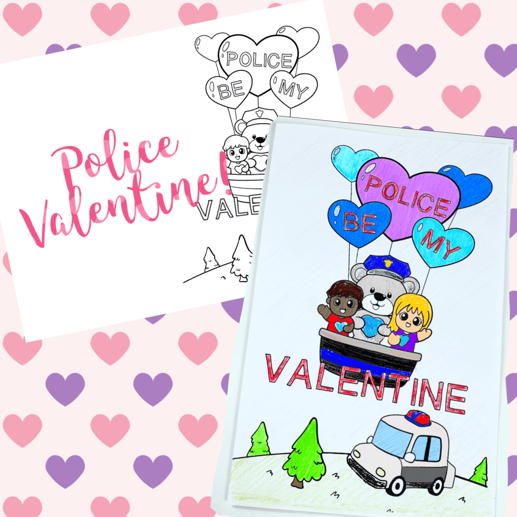 Celebrate Valentines Day with these cute Police Valentines Card! Simply download the free PDF, print, color, fold, and write a message inside for your Valentine!